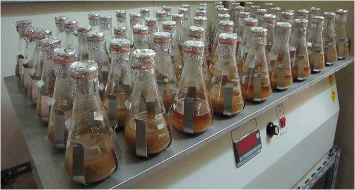 利用500公升甚至吨级以上的液体发酵槽进行菌种液体发酵以收取菌丝体;培养时间短,约七至十四天左右;无法取得野生樟芝特有的三萜类。缺点:无三萜类含量,功效差,不利于推广。